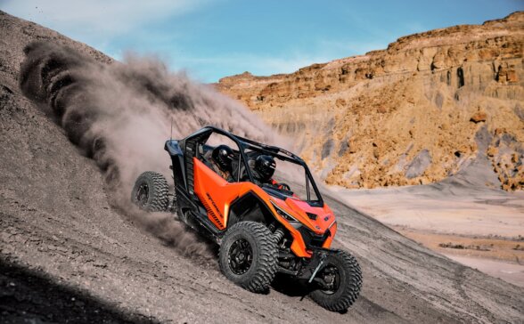 Модель, у якій смілива кольорова палітра поєднується з яскравими елементами, вирізняється ексклюзивними передніми дверима, елегантною алюмінієвою кришкою паливного бака, міцним алюмінієвим захистом лебідки та інноваційним дизайном колісних дисків. Нова передня решітка радіатора в поєднанні з унікальними фарами та міцними новими боковими бамперами завершують брутальний і неповторний зовнішній вигляд цього мотовсюдихода.